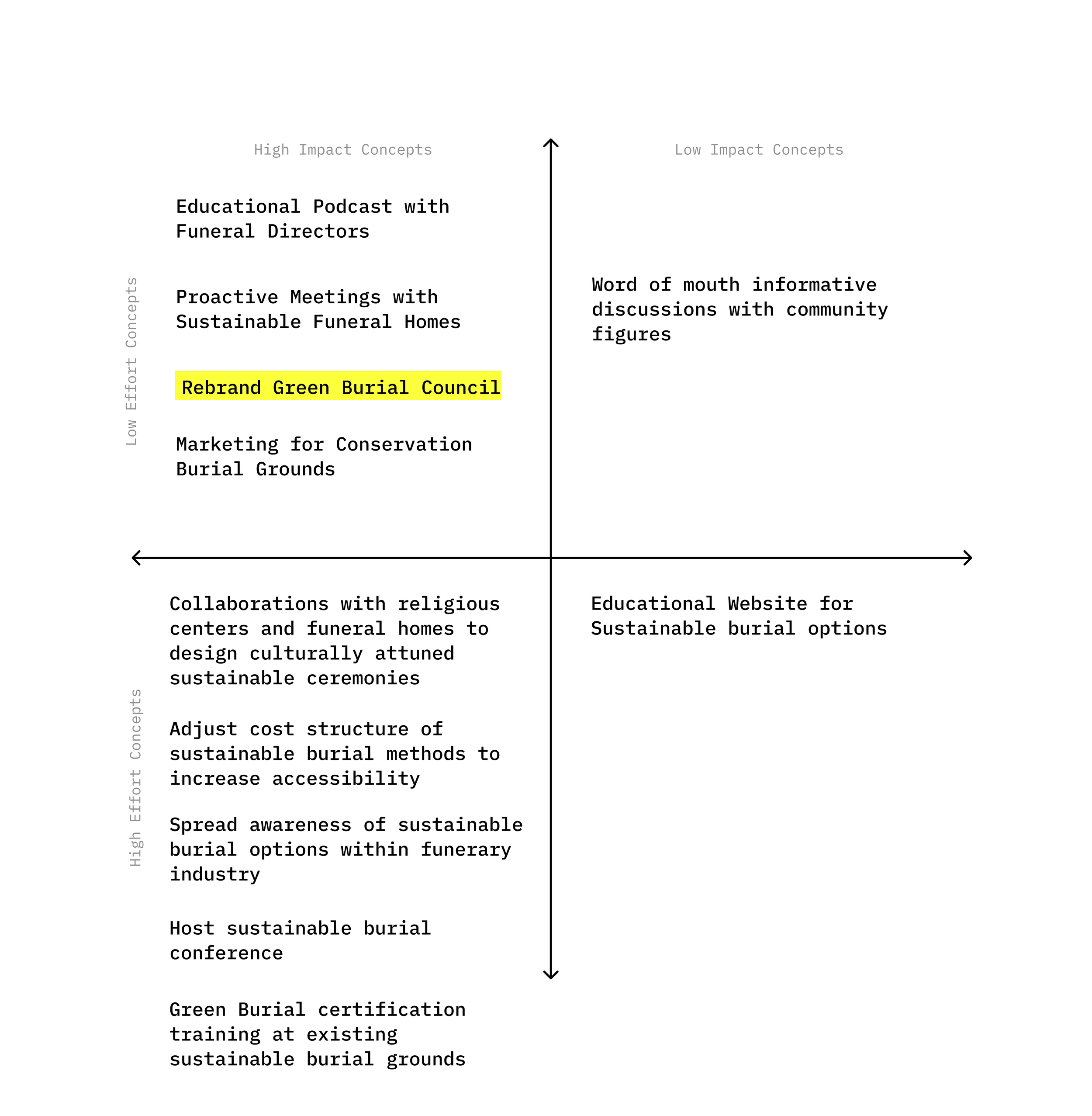 While reviewing academic journals and peer-reviewed industry publications, our team constructed an Ecosystem Map of traditional and sustainable burial methods that are available.